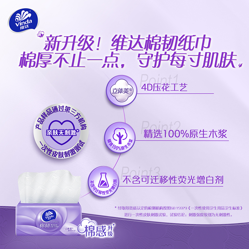【超定制】维达棉韧压花抽纸3层S码家用纸巾实惠整箱装